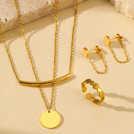 18K Vergoldete Ohrringe | Vergoldetes Luxus-Set: Doppel-Lagen Kette und Ring