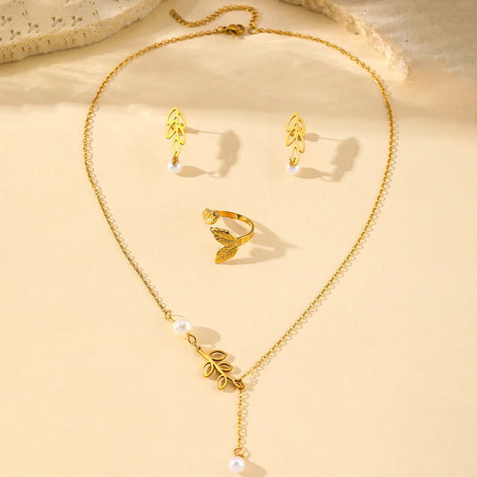 18K Vergoldete Vergoldetes Blatt-Schmuckset mit Perle
